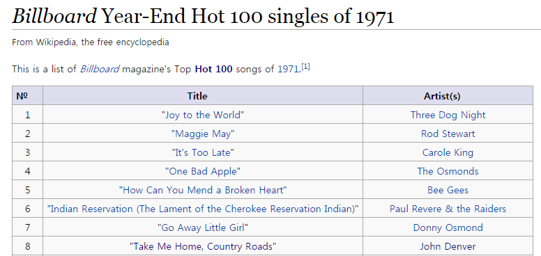 그리고 1971년 Take Me Home, Country Road이후로 수많은 히트곡들, 심지어 우리 귀에도 친숙한,