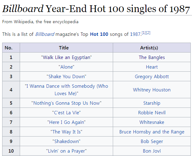 필자가 Manic Monday를 선택했다고 해서 마치 빌보드1위곡이 없다는 오해를 하지 말기 바란다. 뱅글스는 결코 만만하게 볼 밴드가 절대 아니다. 엄청난 실력을 지닌 대단한 뮤지션들이다. 이래봬도 1987년 빌보드 연간차트(1987년 한해 통틀어서 가장 많이 팔린 음반) 1위가 뱅글스였다.